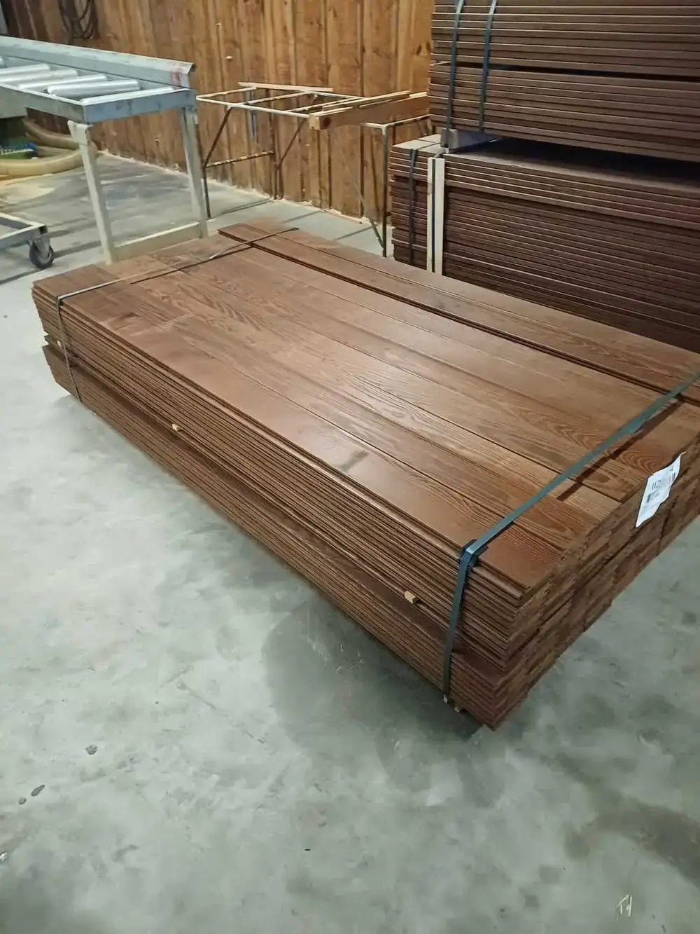 Grâce à un traitement thermique 100 % naturel, sans ajout de produits chimiques, le Pin Thermo et le Frêne Thermo offrent une durabilité exceptionnelle. Ce procédé confère à ces bois une stabilité dimensionnelle remarquable et une protection naturelle contre les agressions extérieures.